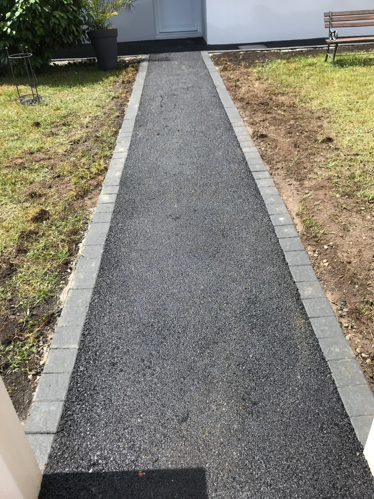 Les bordures jouent un rôle essentiel dans la durabilité et l’esthétique de votre allée en enrobé. Elles permettent de :