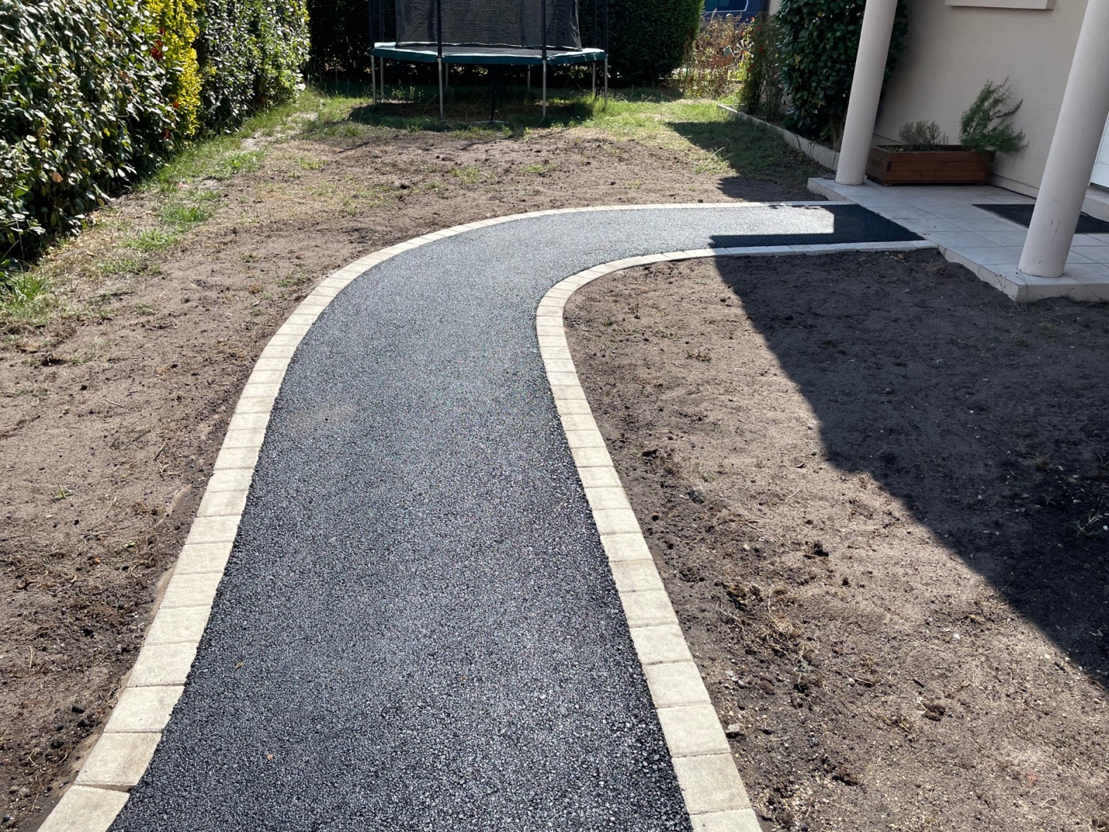 Selon vos envies, d’autres matériaux peuvent également être utilisés : traverses en bois, galets décoratifs, bordures pavées ou éléments minéraux assortis à votre extérieur.