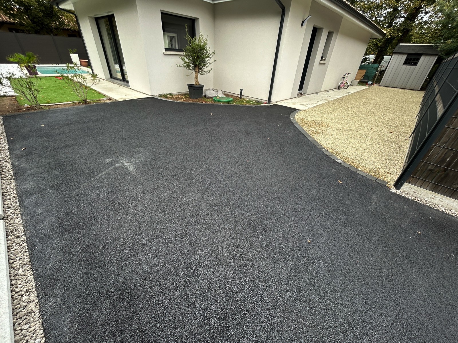 La création d’allées extérieures est une étape essentielle pour valoriser vos espaces et améliorer leur accessibilité. Que vous souhaitiez une allée carrossable pour votre garage ou un chemin d’accès pour votre jardin, nous offrons des prestations sur mesure adaptées à chaque projet. Nous réalisons des allées en enrobé noir ou rouge, parfaites pour un style moderne et épuré, mais aussi en calcaire stabilisé pour une esthétique naturelle et chaleureuse.